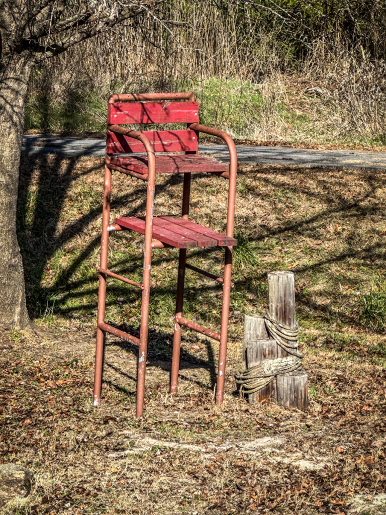 Kaleb told us that the mill pond had been a popular swimming hole. The creek takes a deep bend behind the school, and that place was known as Lando Beach, hence the stone at the history center. Apparently there was a community pool which is where the lifeguard chair came from, but the creek was the preferred venue.