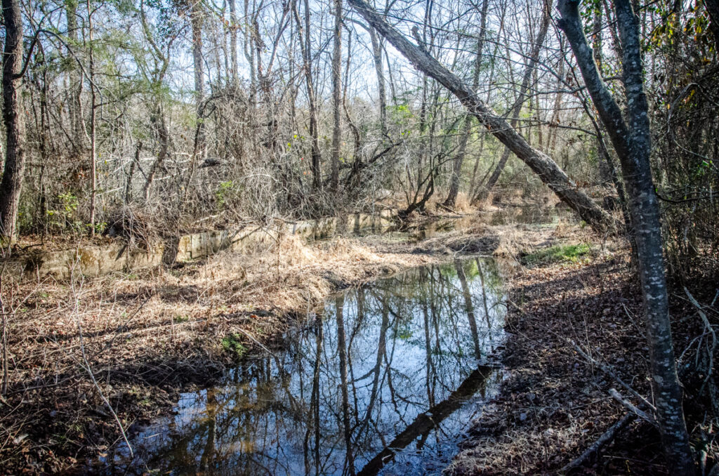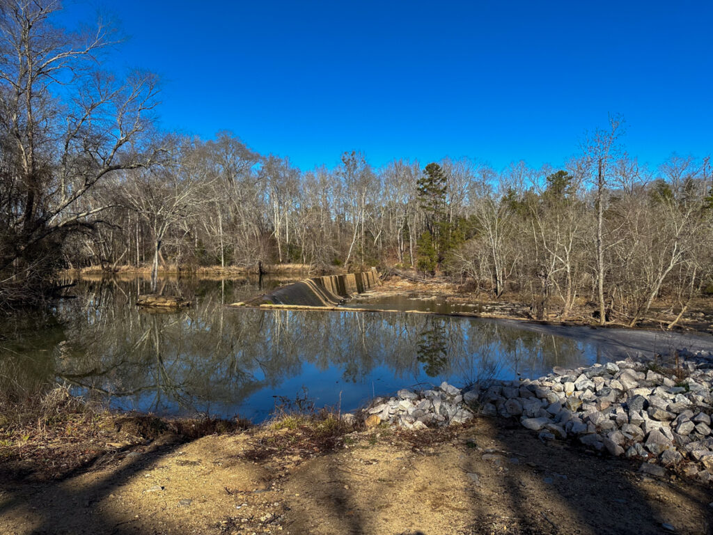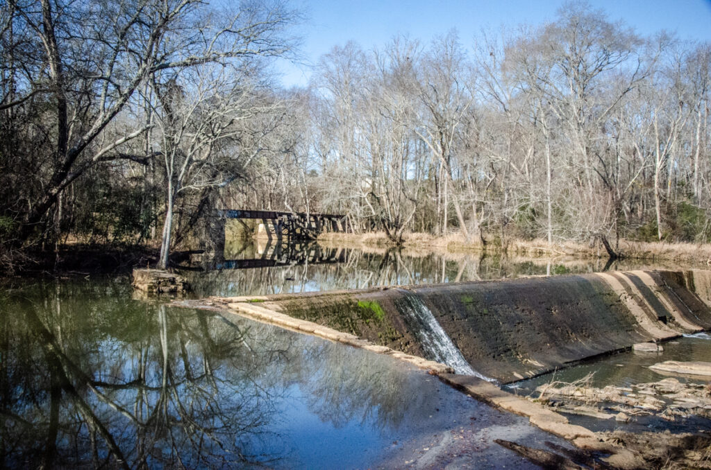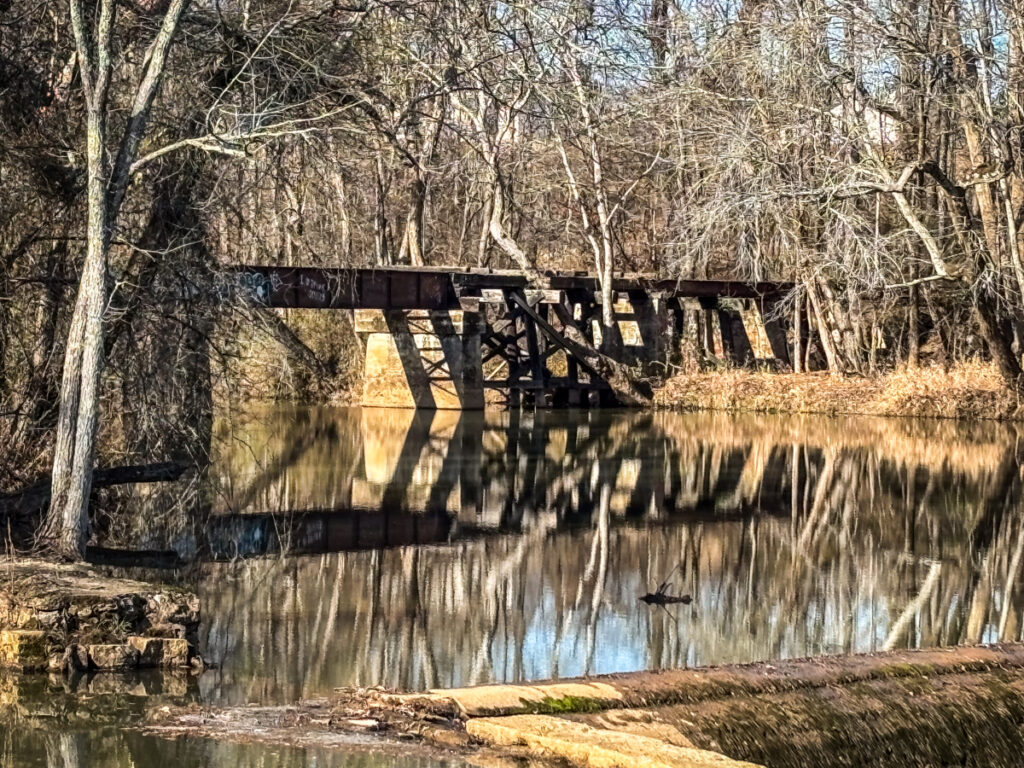 Eventually we reached Fishing Creek and the dam that diverted water to the mill. North of the dam was a railroad trestle for the E&M.