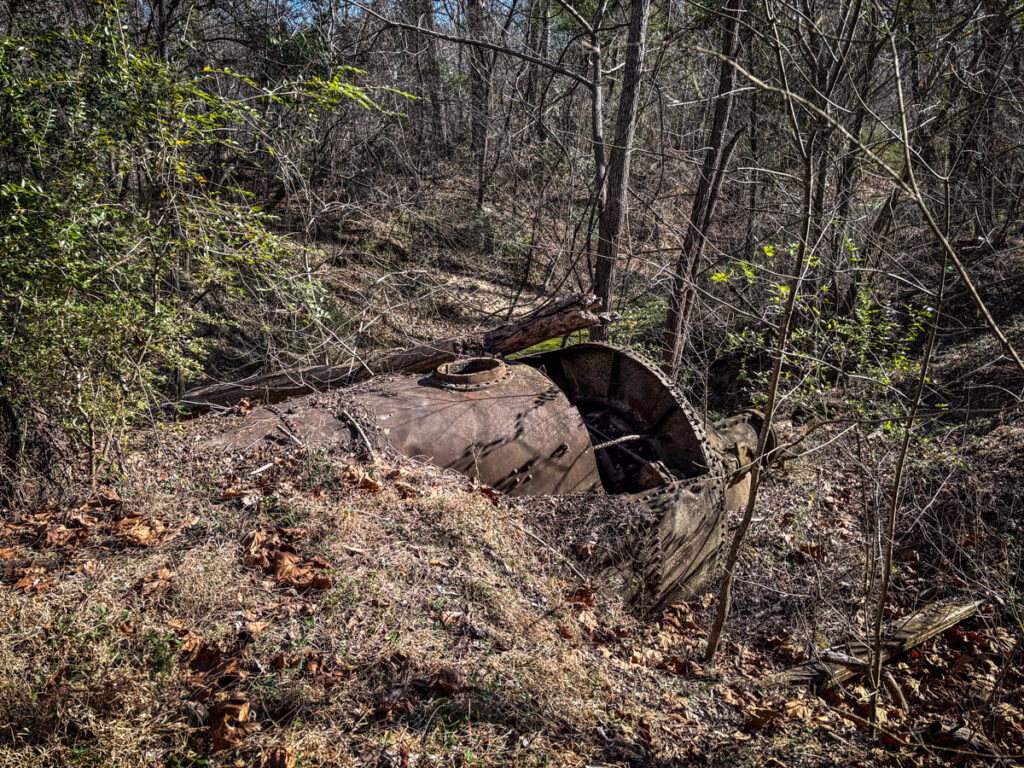 We walked back up to where the train tracks had been and followed them down to the pumping station for the canal. The old pump mechanism was still there.