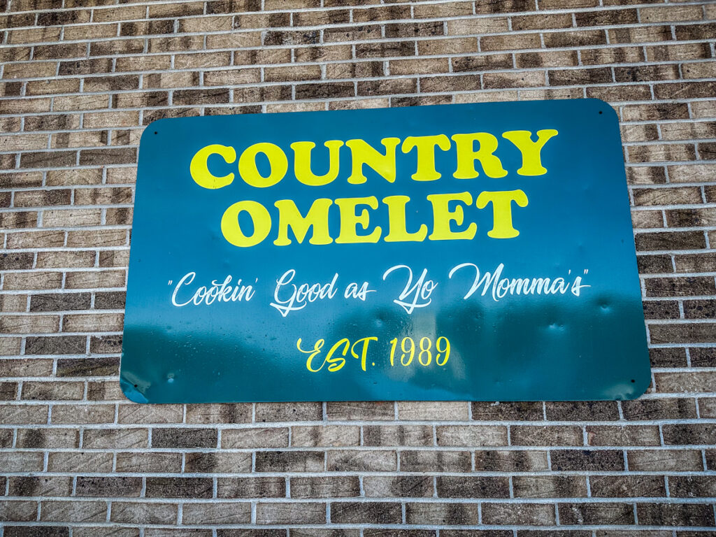 We’re both fans of “adventure dining”, finding those out-of-the-way gems with good local food. We’ll do fast food if there’s nothing else available, but give us a diner or a BBQ hut any day. This time we found the Country Omelet near the I-77 interchange. There was a high pick-up truck density, so we knew it had to be good.