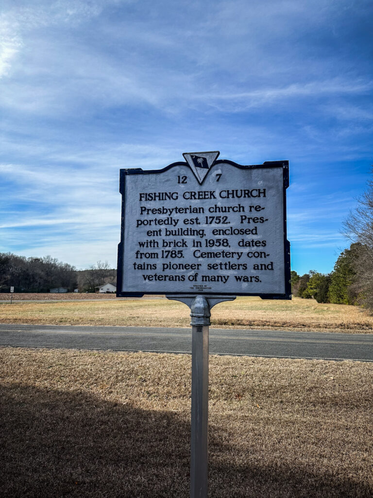 Fishing Creek Presbyterian is one of the most historic churches in the area. It appears on the Mills Map from earlier in this post. The church was established in 1752.