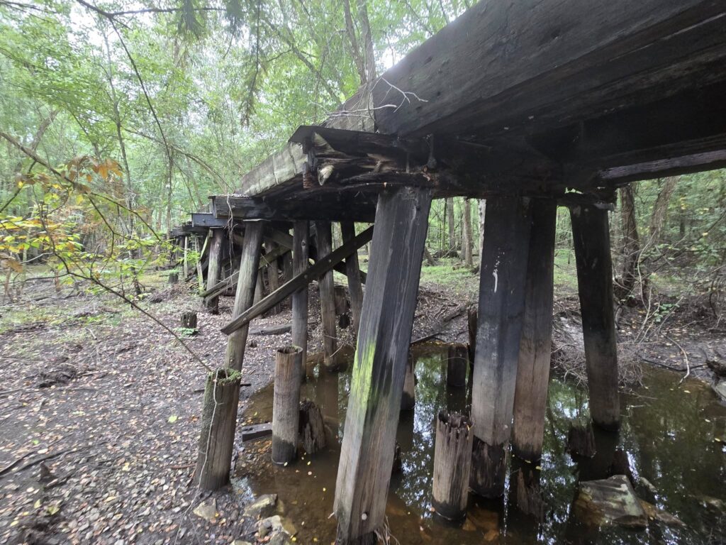 This trestle is part of the old Charleston to Hamburg route, one of the first railroad routes in North America. West of this location the railroad served Edisto Station, which later became the ghost town of Embree. I’m really hoping to do a podcast episode on that town.