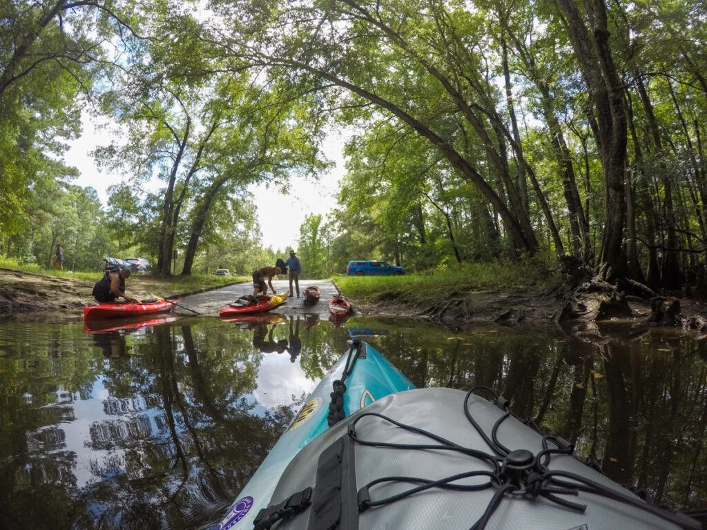 I got to the landing early to check things out. Since this was a new group, I really wanted to know the lay of the land, even though I’ve paddled this route before. It’s a good thing I did. The landing didn’t quite look like I remembered. With recent storms the boat ramp had collapsed. The bank was too steep and the river too deep and swift to comfortably launch.