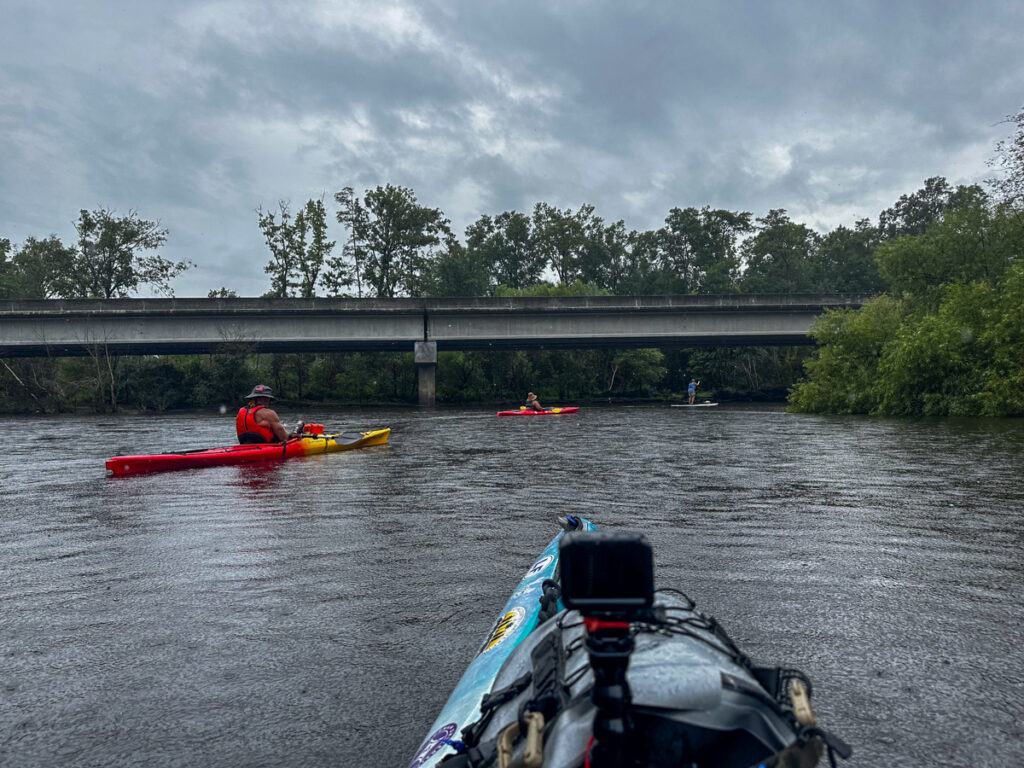 Fortunately, there was access just upstream. We had to go through a fence and down a trough, but it was doable. Six other paddlers joined me for a total of seven of us. One was even on a paddle board. We ran the shuttle and prepared to launch.