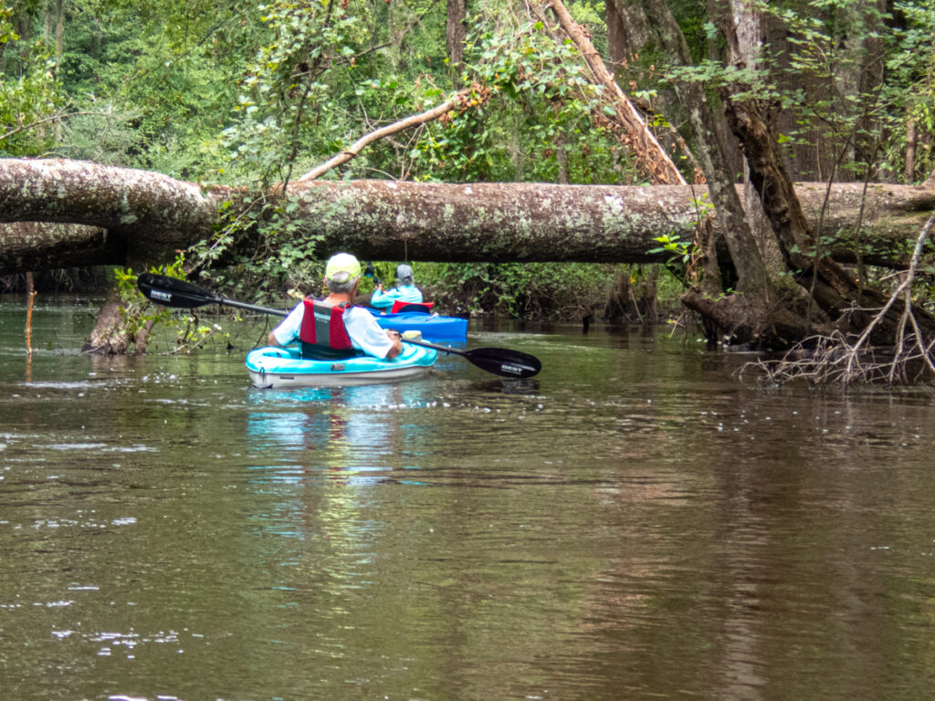 The next Saturday I got up early once again and made the drive down to the Edisto. This time I was paddling with the South Fork Paddlers from Bobcat Landing to Ron Bishop’s private landing. This was a much larger group, with 35 paddlers registered. As with the previous Saturday, this was a route I’d done before. As mentioned before, I’d paddled with this group earlier this summer, but hadn’t written about it. Today’s group was a bit smaller, perhaps because of weather warnings. Quite often there are as many as 80 paddlers registered.