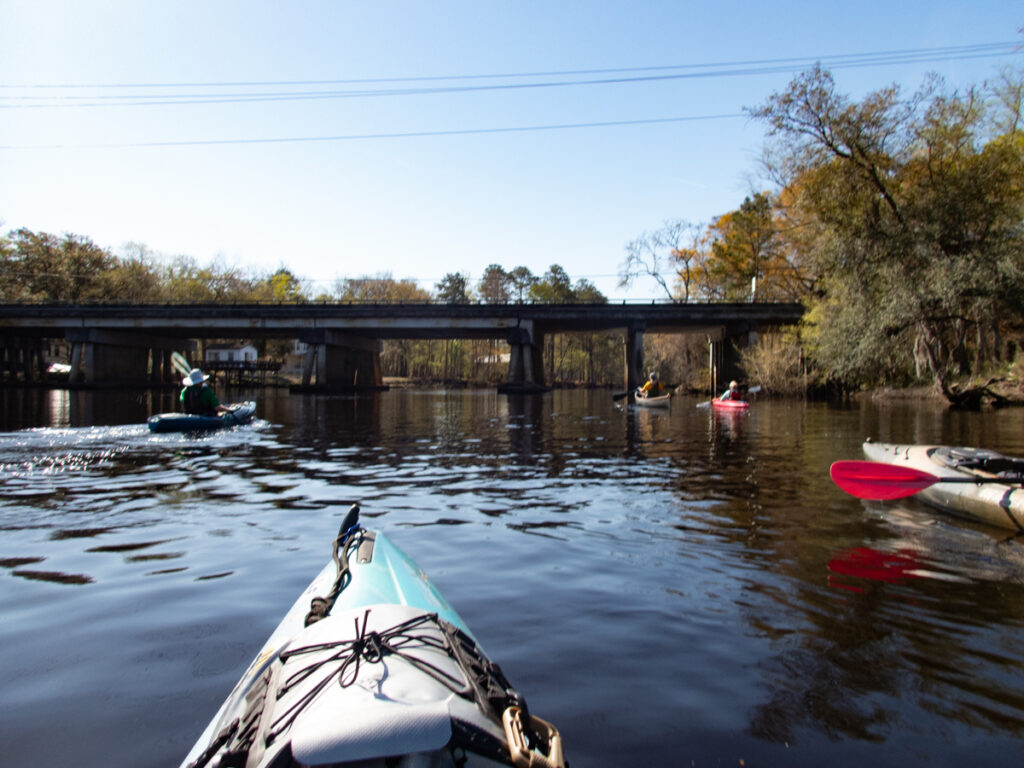 The canal branched off to the left just before the bridge, and another part continued on straight past it. However, I was a bit confused. There was a current, and it was moving AWAY from the main stem. I was tempted to explore further and see where it went, but I didn’t want the rest of the group wondering about me. I paddled back out the way I came.