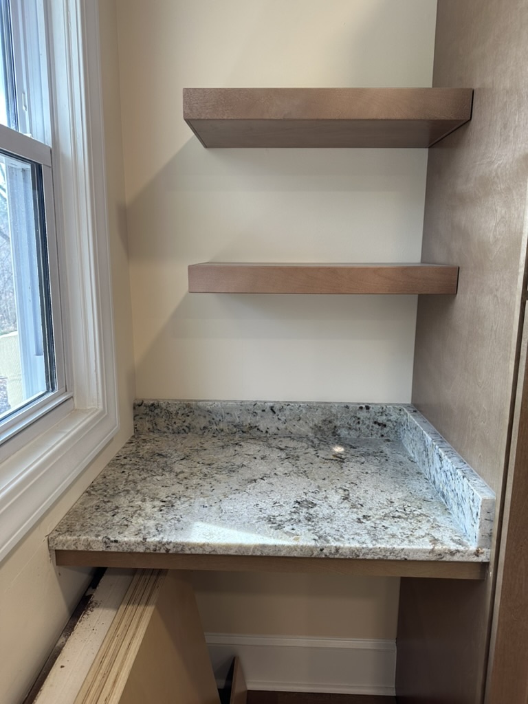 Val has been hard at work putting door knobs and drawer pulls on the cabinets. When he finishes that, we can start unpacking more boxes. Tomorrow he will connect the plumbing and dishwasher. The only missing piece after that is the electricity to the hood vent. We hope that gets done quickly so that we can cook in the new kitchen. Fingers crossed!