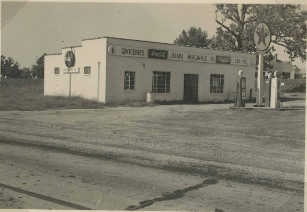 By the early 1900s there was only one store remaining at the intersection of Jalapa Road and US 76. I was able to find a photo of the store from 1943. It’s the same building shown at the top of this post.
