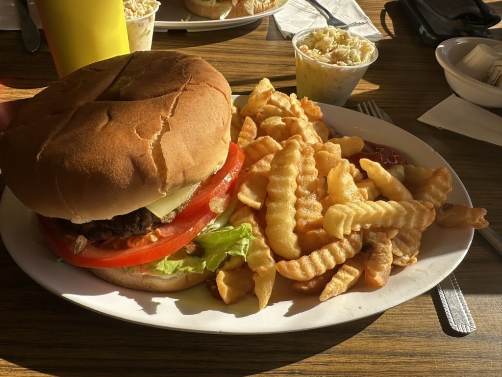 Alan and I left the area and continued south. We paused at Liberty Universalist Church and the Feasterville Academy, but didn’t linger. We decided we wanted to do a more extensive trip later. Our last stop was at one of our favorite haunts in this area, Bill & Fran’s. We normally do breakfast here, but we were pleased to find that they had excellent lunch options. My burger was great.